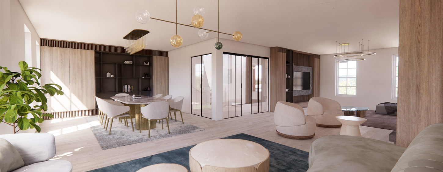The proposal aims to completely overhaul the interior layout, including the addition of a lift and raising the ceiling height at the lower ground level. Additionally, it seeks planning permission for several external modifications, namely the erection of a single-storey, flat-roofed, part-width rear extension, replacement of the ground floor window and door with full-length glazed patio doors, and the installation of an air conditioning unit on the flat roof of the dwelling. In addition to internal alterations, there is a proposal to modify the rear landscape by levelling it to enhance the functionality of the rear courtyard. This includes the introduction of sustainable drainage systems and new landscaping features.